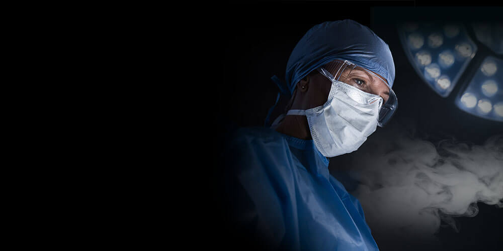 Herkömmliche chirurgische Masken können 77 % der Partikel in chirurgischen Rauchgasen nicht herausfiltern.1,2