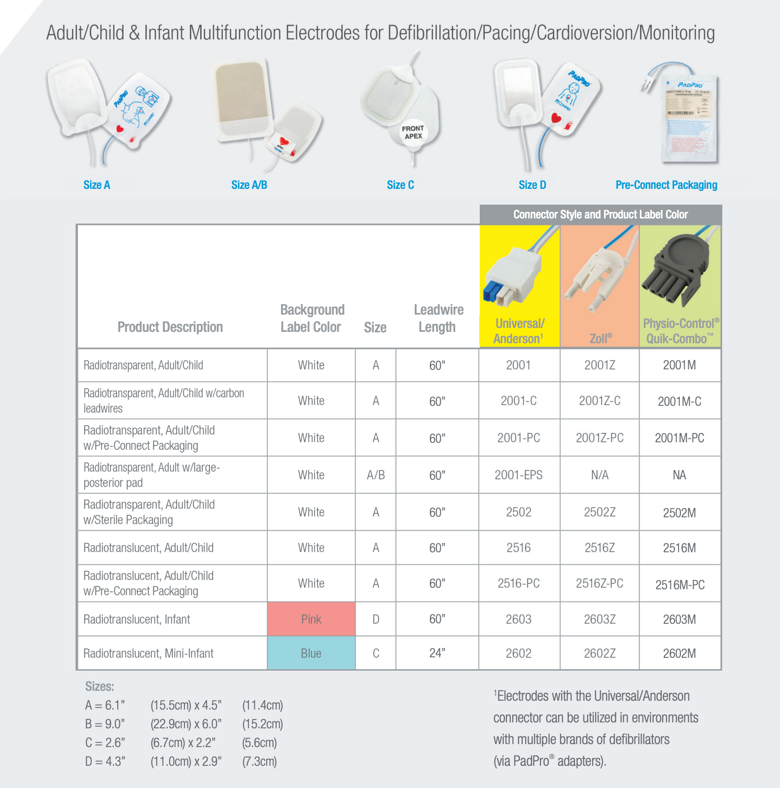 PadPro® Defib Electrode Adult, Radiotransparent Pads with Large-Posterior Pad, Anderson Connector
